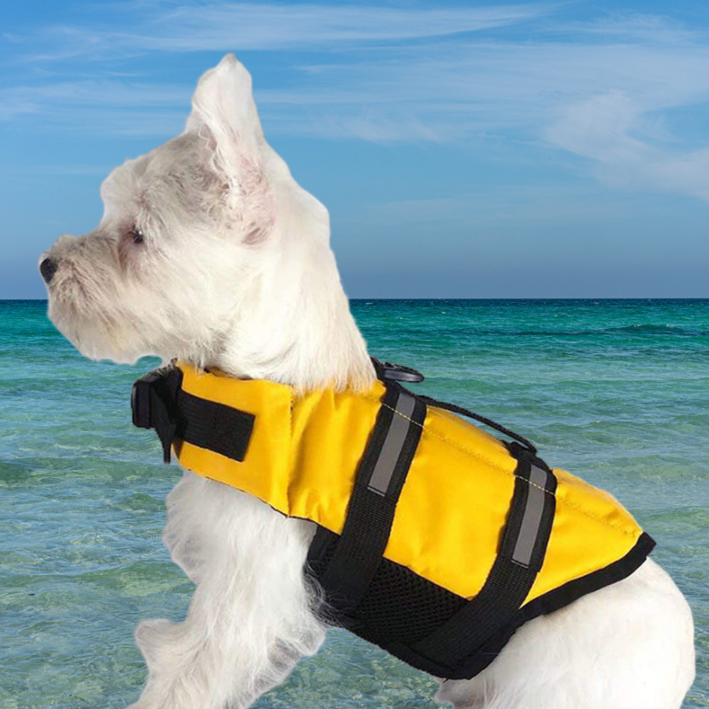A mellény hátán fogó van. Ezzel bármikor irányba tudjuk segíteni a kutyust úszás közben. A kisebb súlyú kutyákat ki is tudjuk emelni a vízből a fogó segítségével, ha egyedül nem tud kijönni, vagy vészhelyzet van.