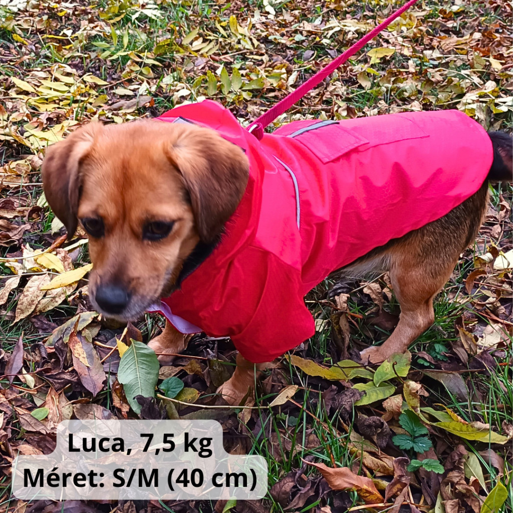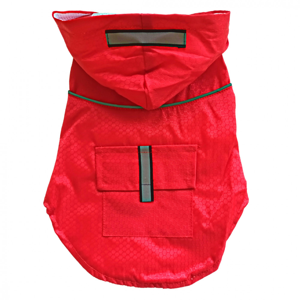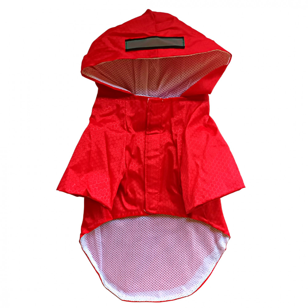 Traditional dog raincoats cover only the dog's back, and partly cover the sides and the chest.