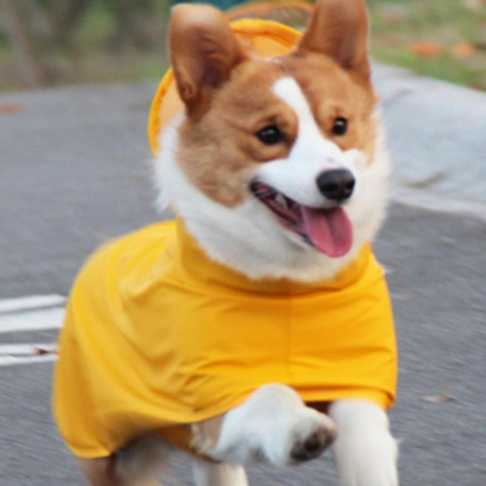 Vidám, sárga színű esőkabát, hosszú testű kutyáknak is ajánlott.